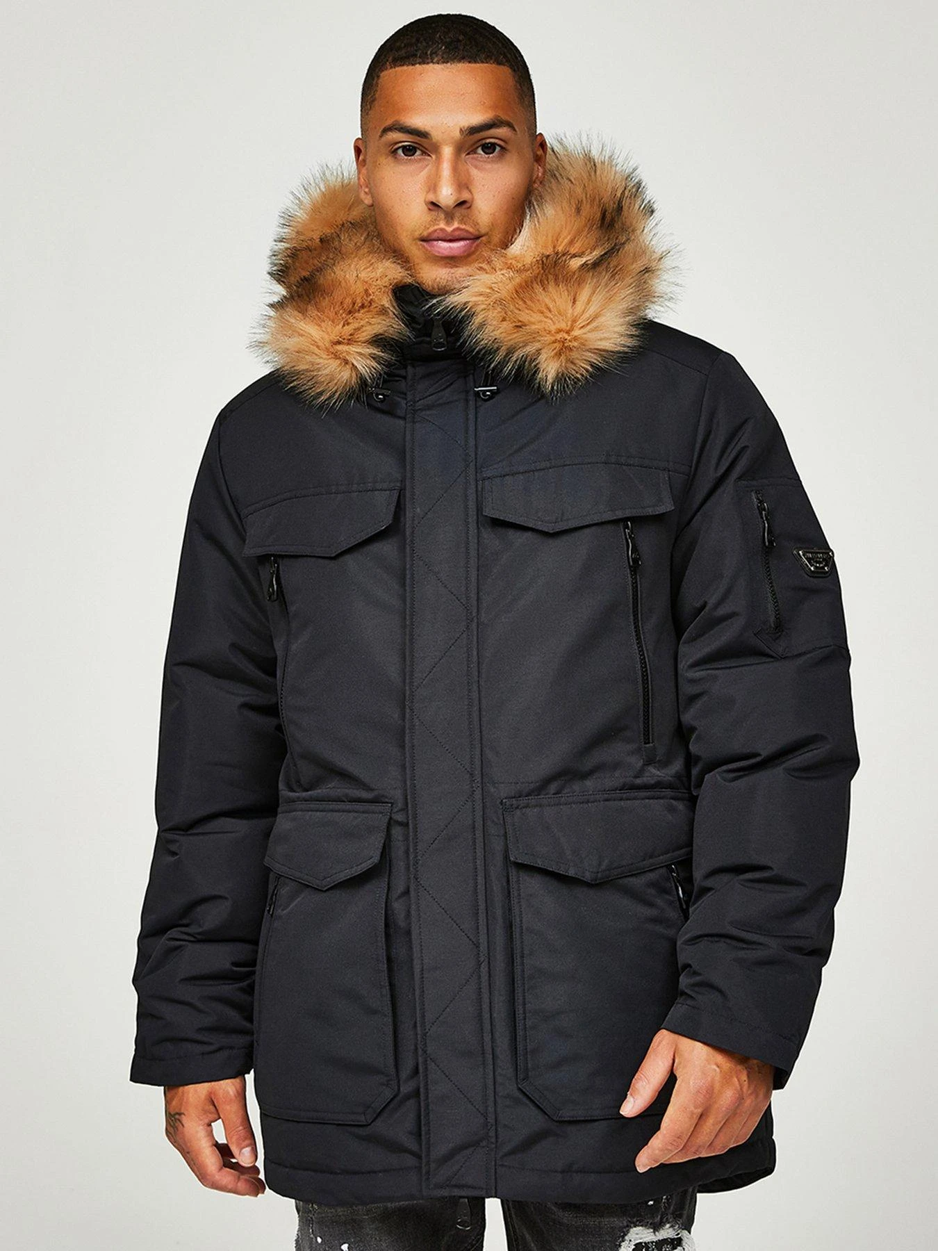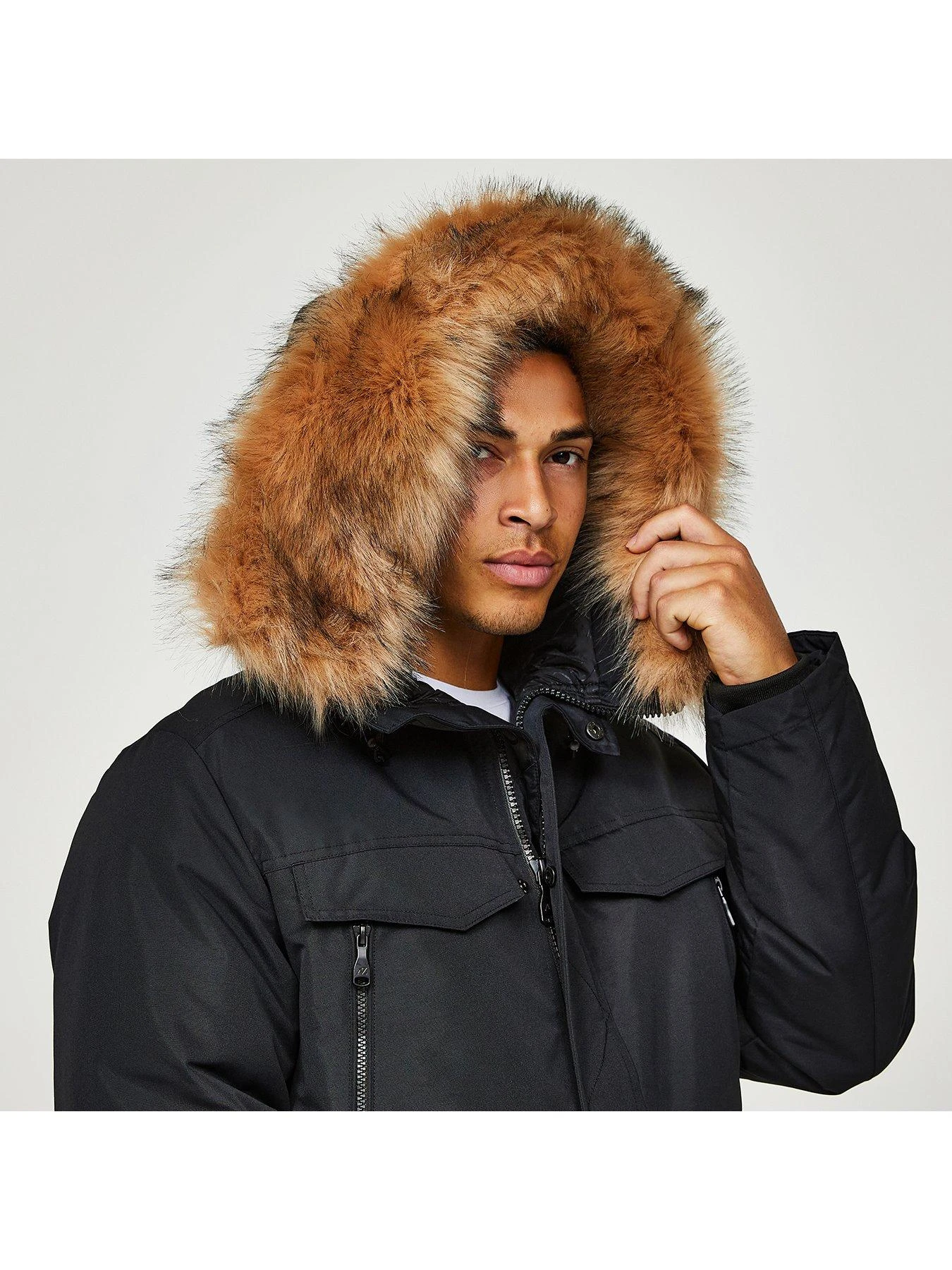 - Fluffy faux fur trim to the hood