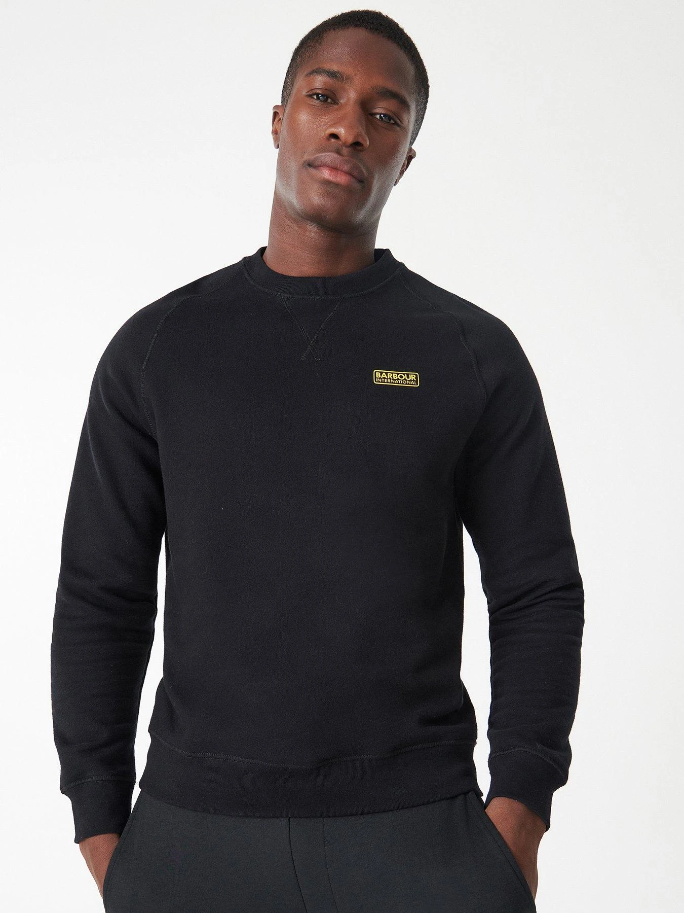 - Barbour International continues to expand its range of wardrobe essentials with this black pick. The pullover is a crew neck for versatile wearing and features the Barbour International logo to the chest. The lining is brushed to give it that soft hand-feel.