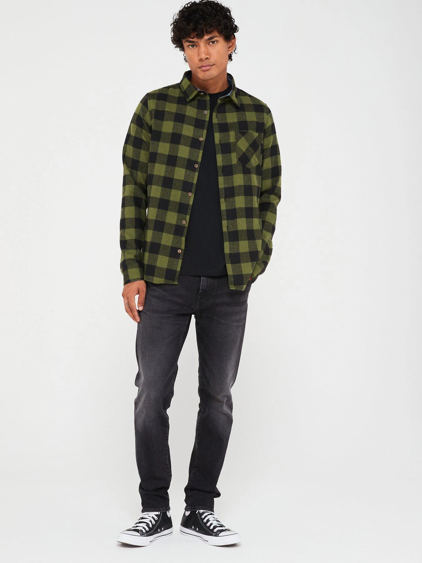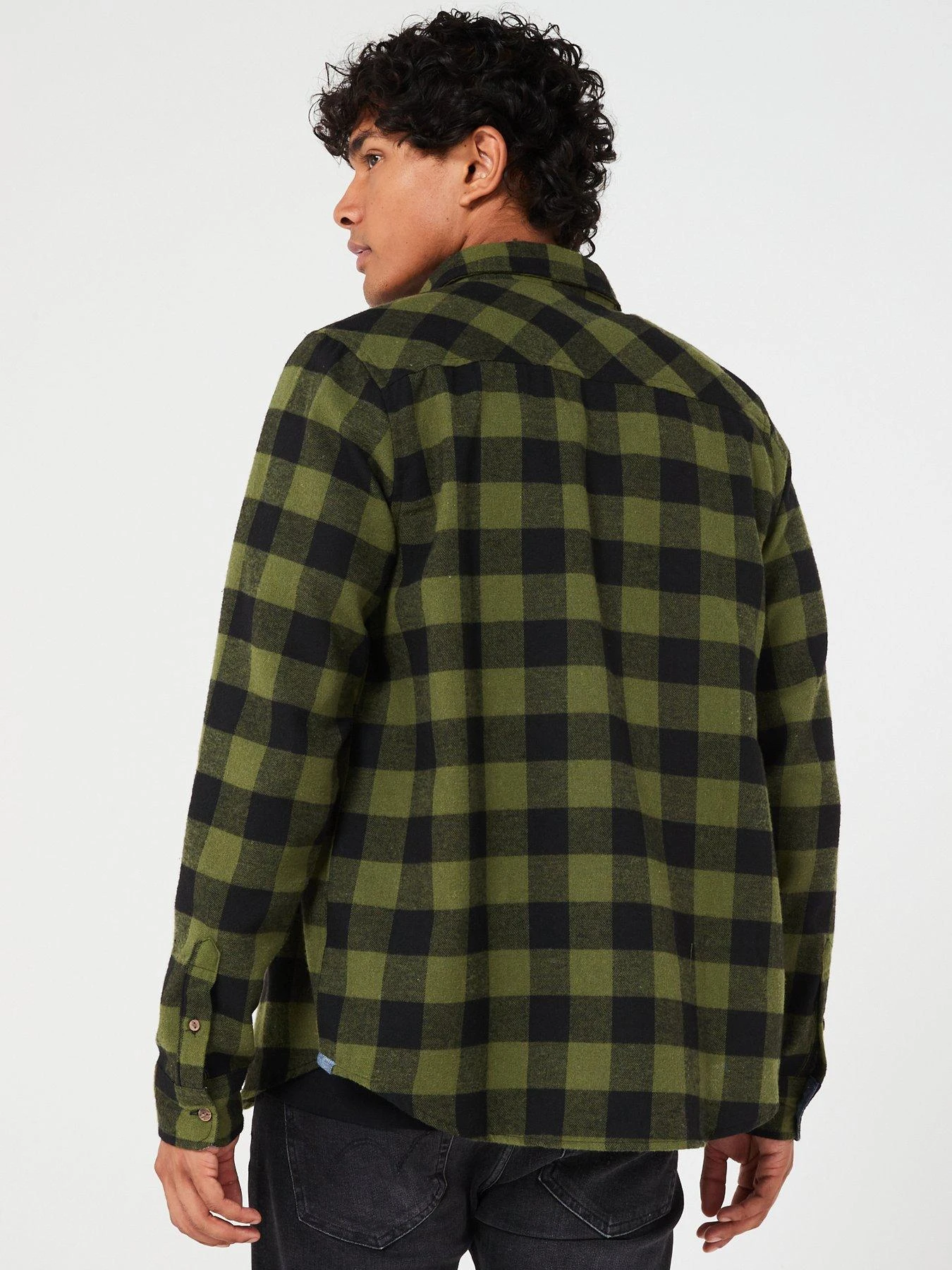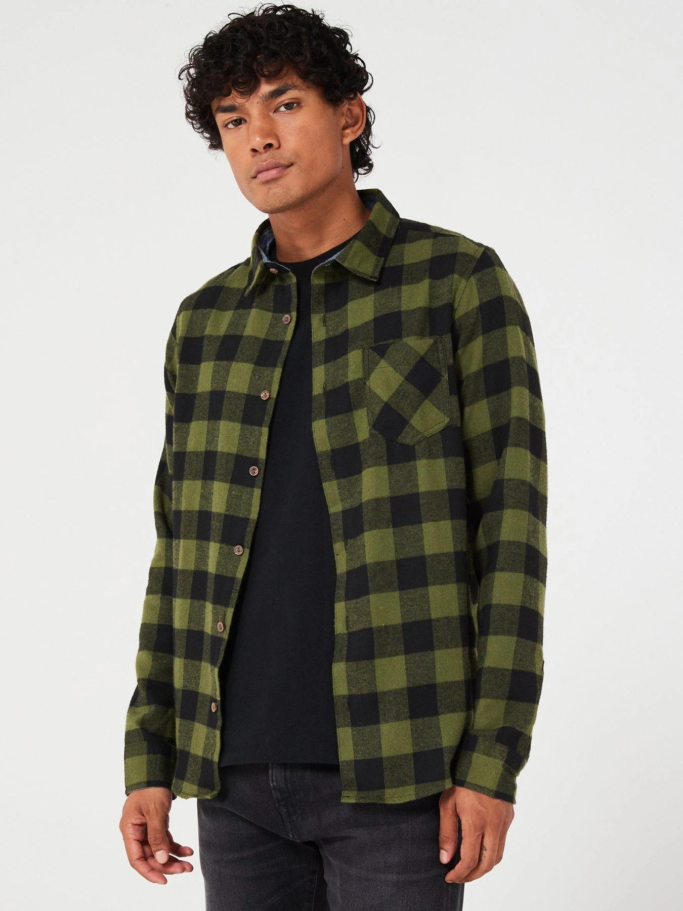 Brave Soul Long Sleeve Check Shirt-khaki/black