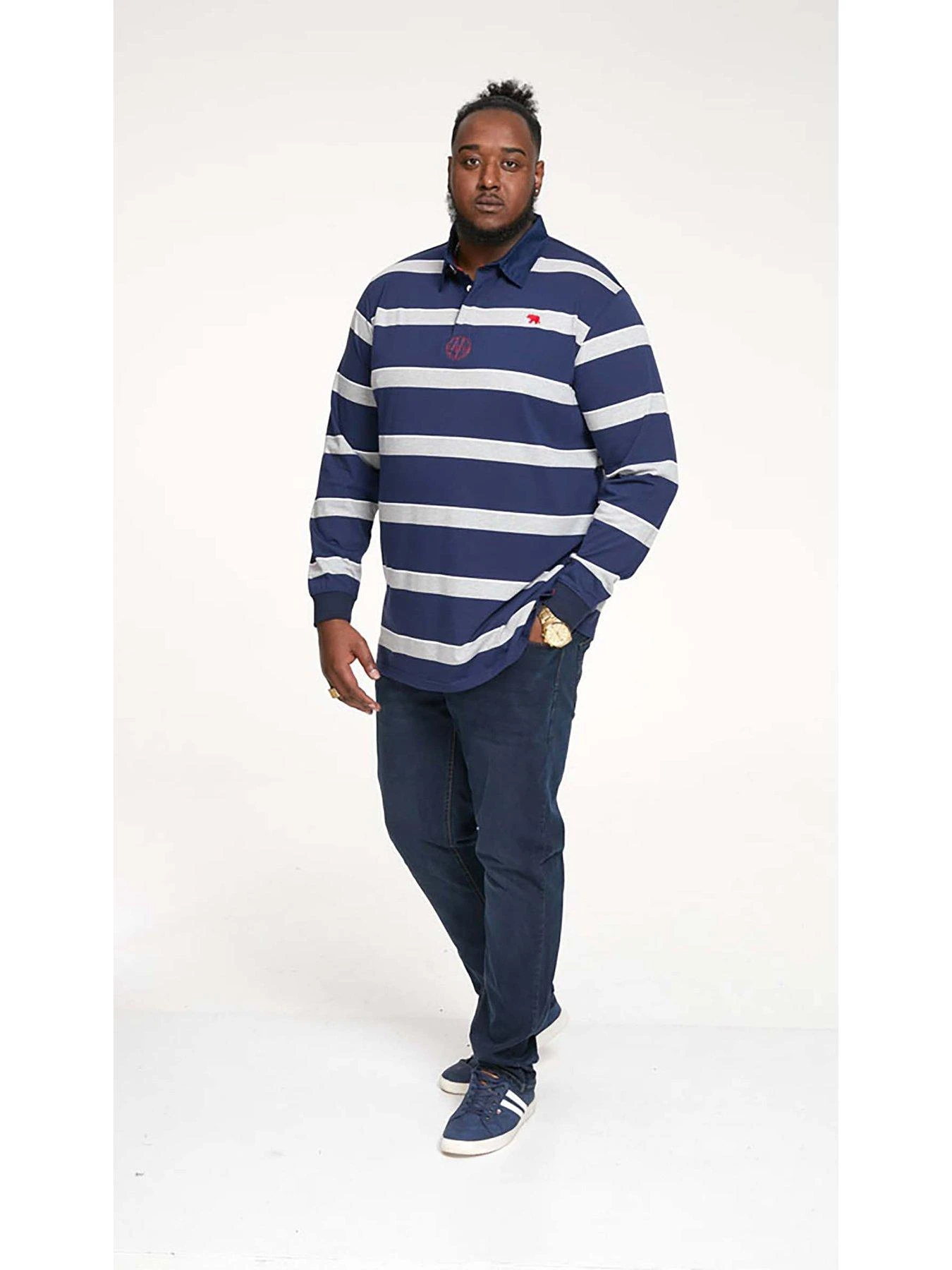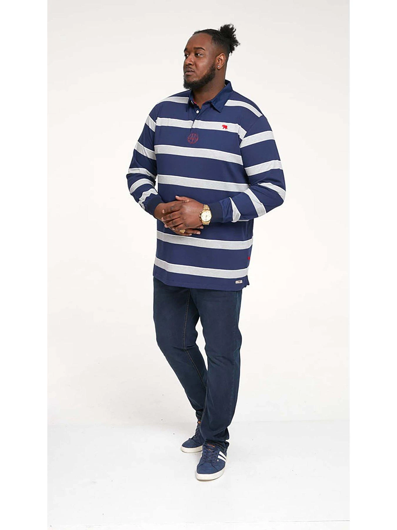 D555 L/S Rugby Style Striped Polo Shirt