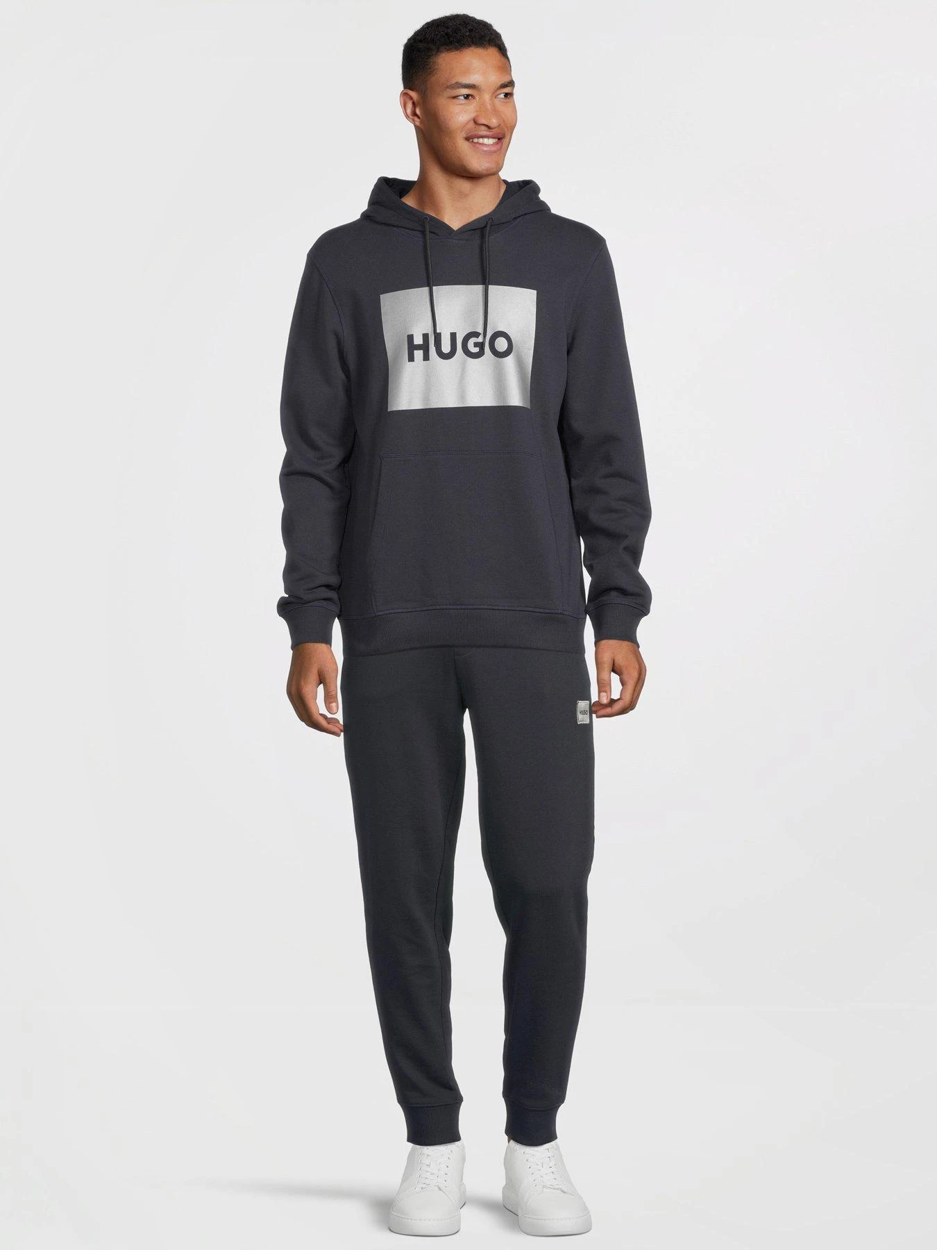 - Metallic Hugo branding to chest