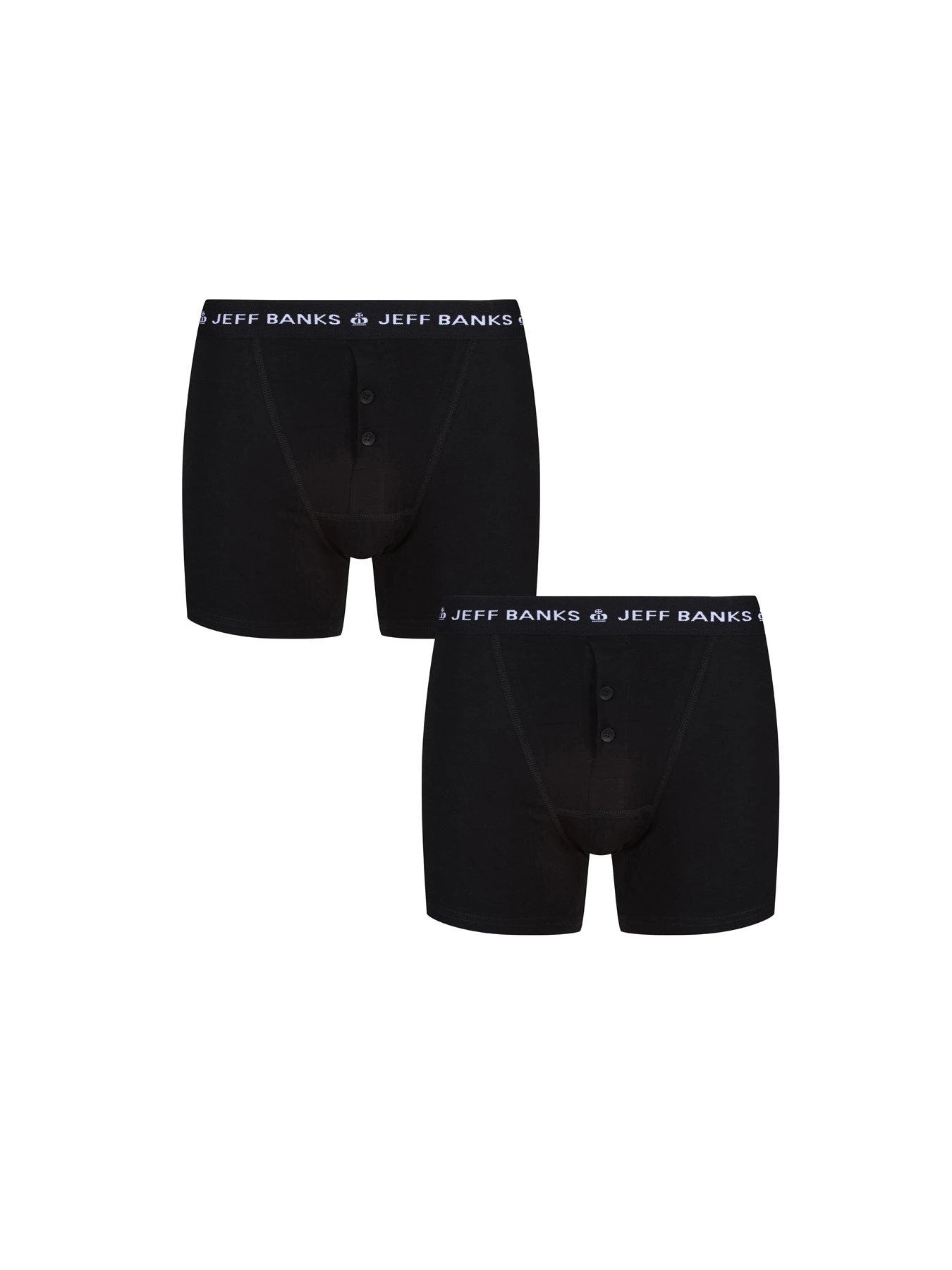 Give your underwear an update with these black Jeff Banks two-button fly boxers. Snug and comfortable these boxers are made from a cotton rich stretch jersey, and feature the Jeff Banks stylish branding on the smooth, brushed feel waistbands and are made with flat body seams, for extra comfort.