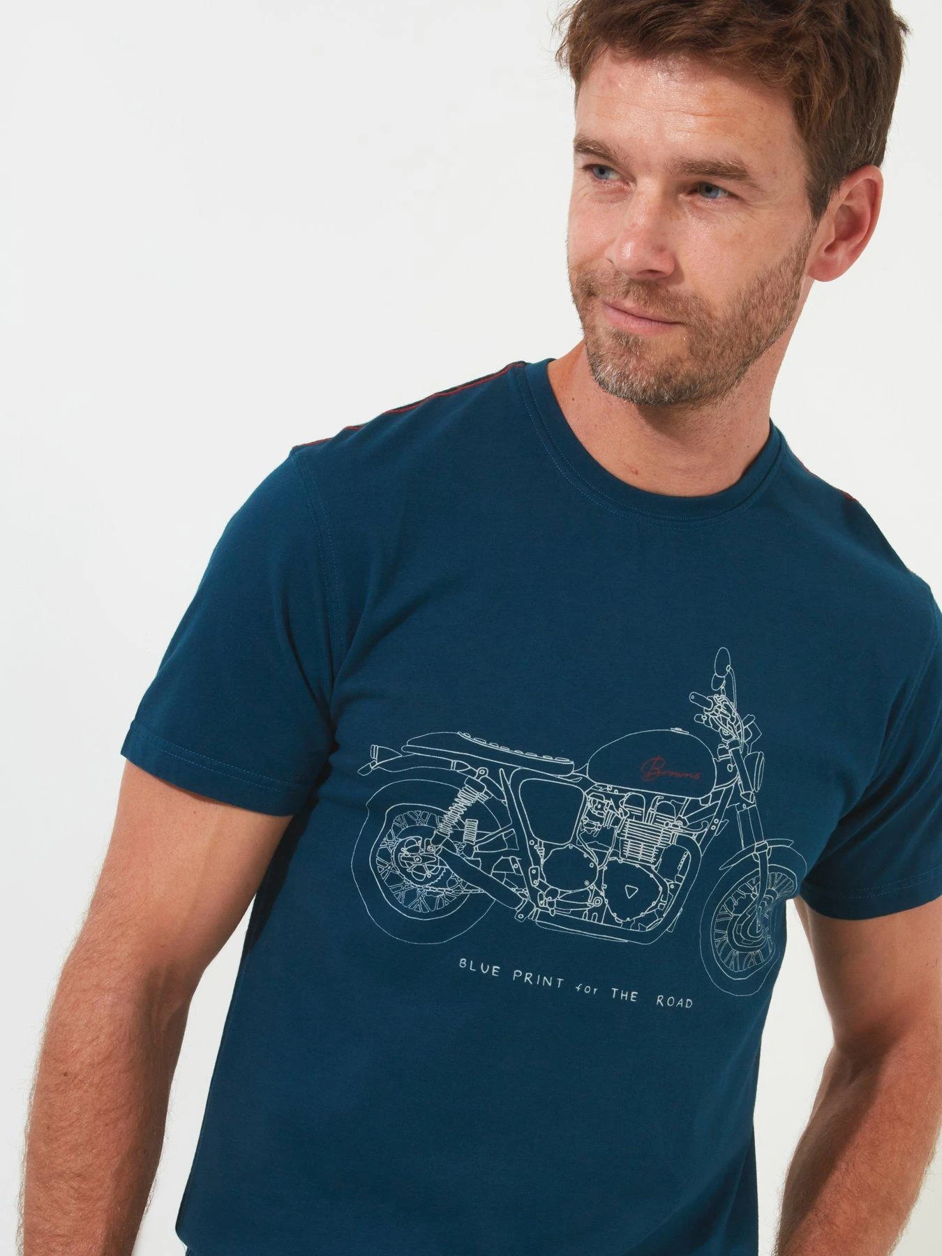 Go back to basics with a Joe Browns classic graphic t-shirt reinvented. Combining a versatile colour with a minimalist print of our custom bike, this blueprint-style tee will have you ready to get back on the road for your next adventure. Wherever you end up, this graphic tee will be right there with you.