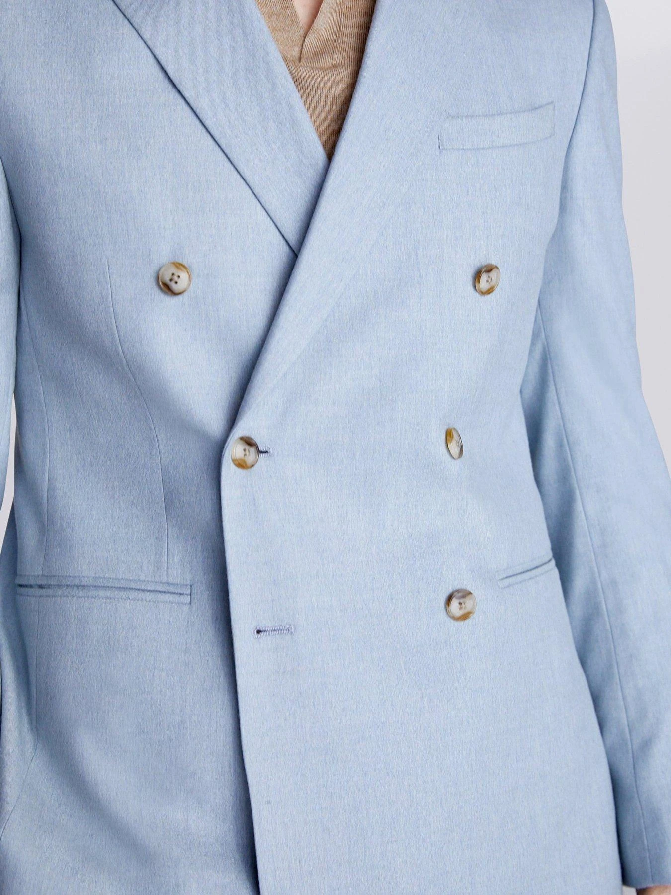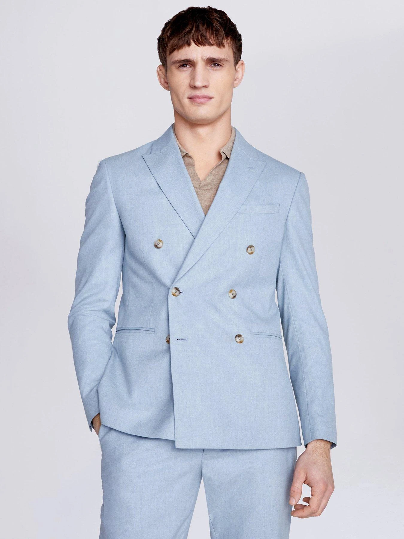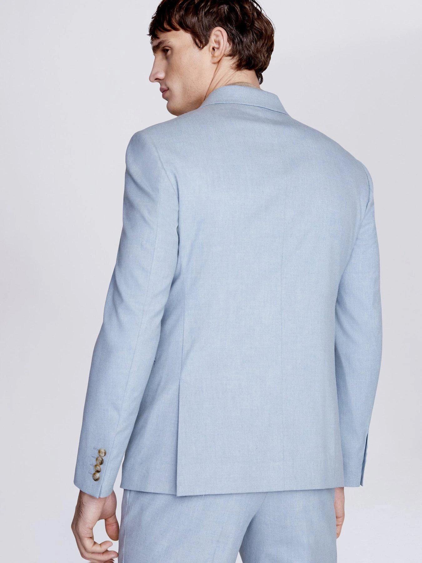 Crafted in soft flannel blended with stretch and recycled fibres, Moss’ double-breasted jacket is a great one to break out at destination weddings and high-summer events.Trimmed with patterned buttons, it’s cut to a slim fit and delivered in an aqua tone that’s easy to style with neutral colours.