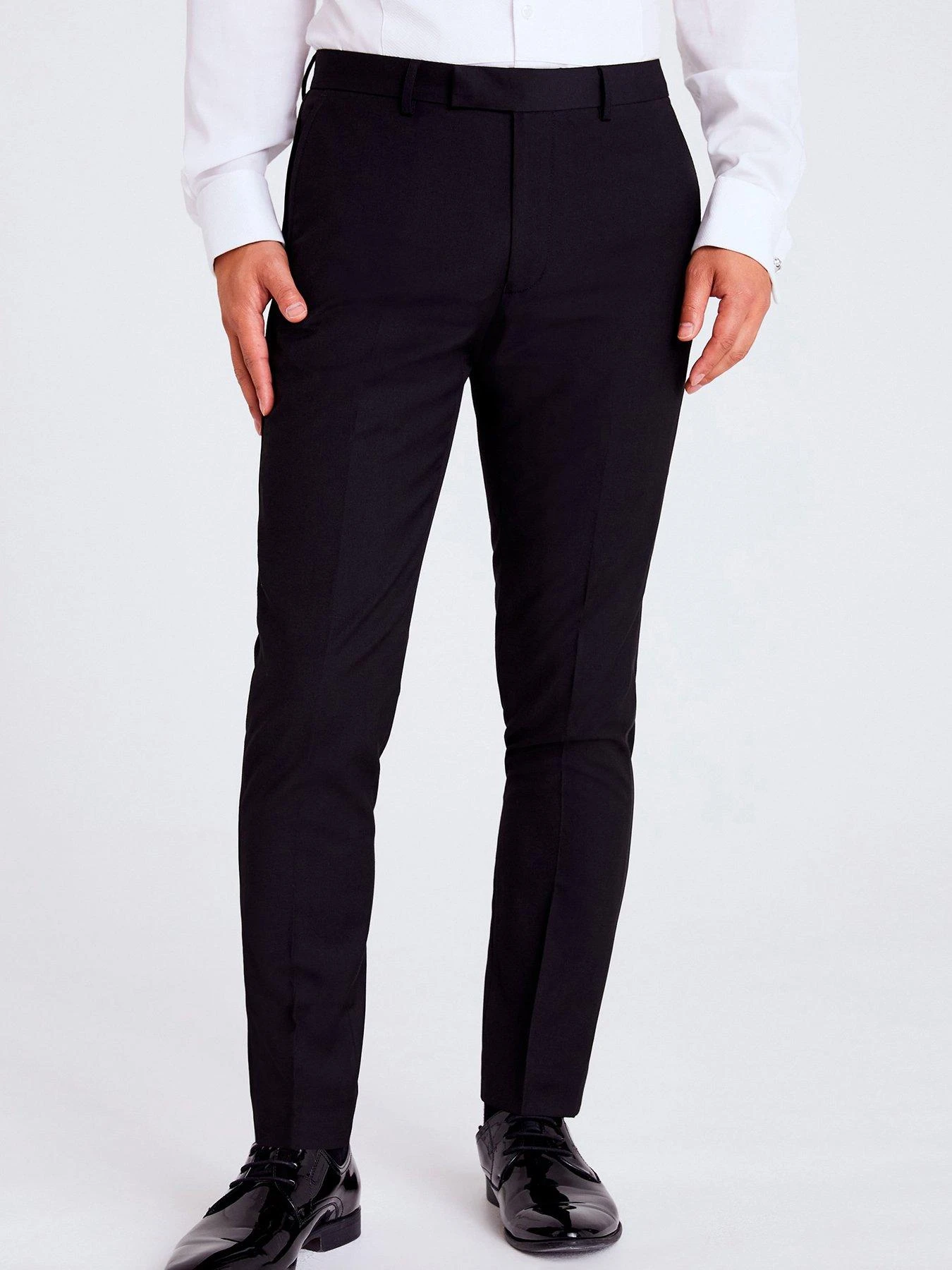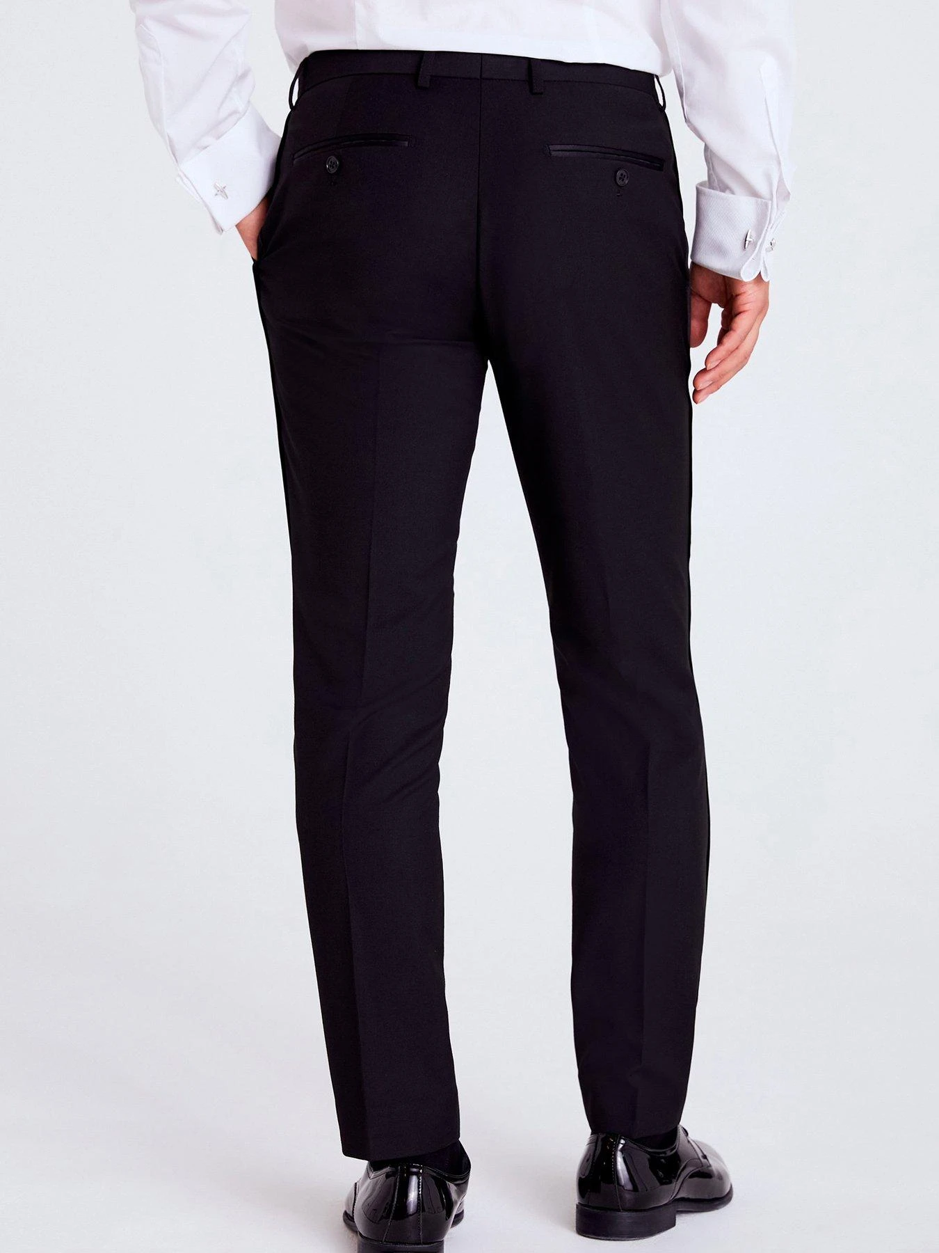 Trimmed with tonal satin piping along the side seams, Moss’s’s slim-fit trousers are a flexible base for creating occasion looks. Couple them with a tux jacket or offset the black colour with jewel-toned velvet.