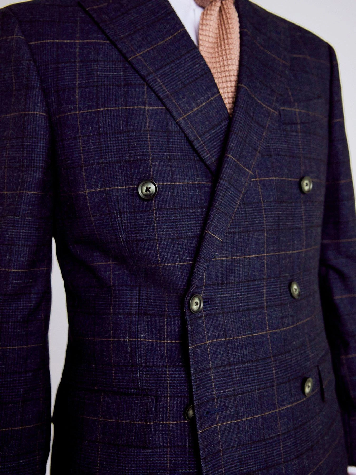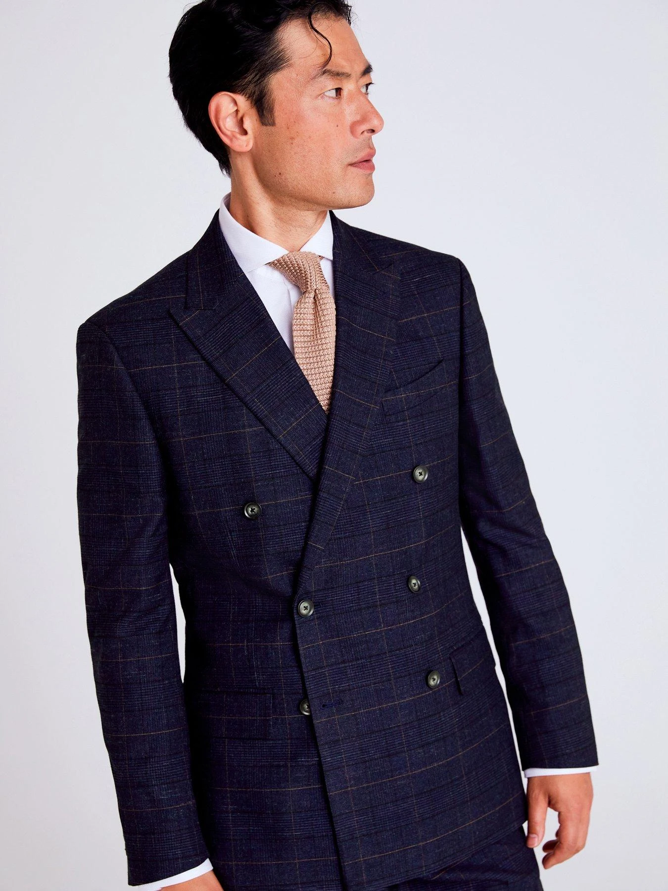 Featuring a double-breasted closure that’ll always turn up the goods for formal commitments, Moss’ jacket is cut to a strong tailored fit. The stretch fabric is delivered in a deep navy with a black check, keeping the detail understated so you can throw in some brighter tones in your accessories. Due to individual browser/monitor settings, actual colours may differ slightly.