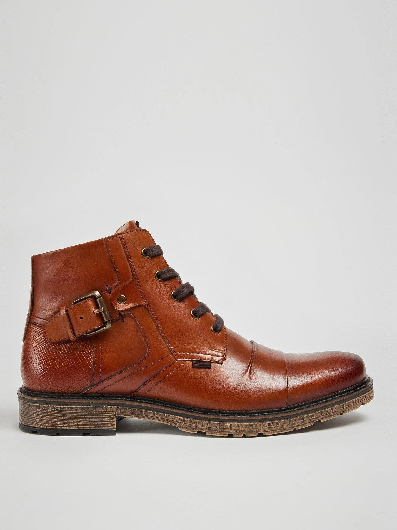 A new boot style to the POD collection, the lace-up CASSIDY boot is set on a durable TPR sole and finished with premium, smooth leather uppers. The brass buckle detailing and exposed stitching add edge to an otherwise classic style. Lace-up fastening
