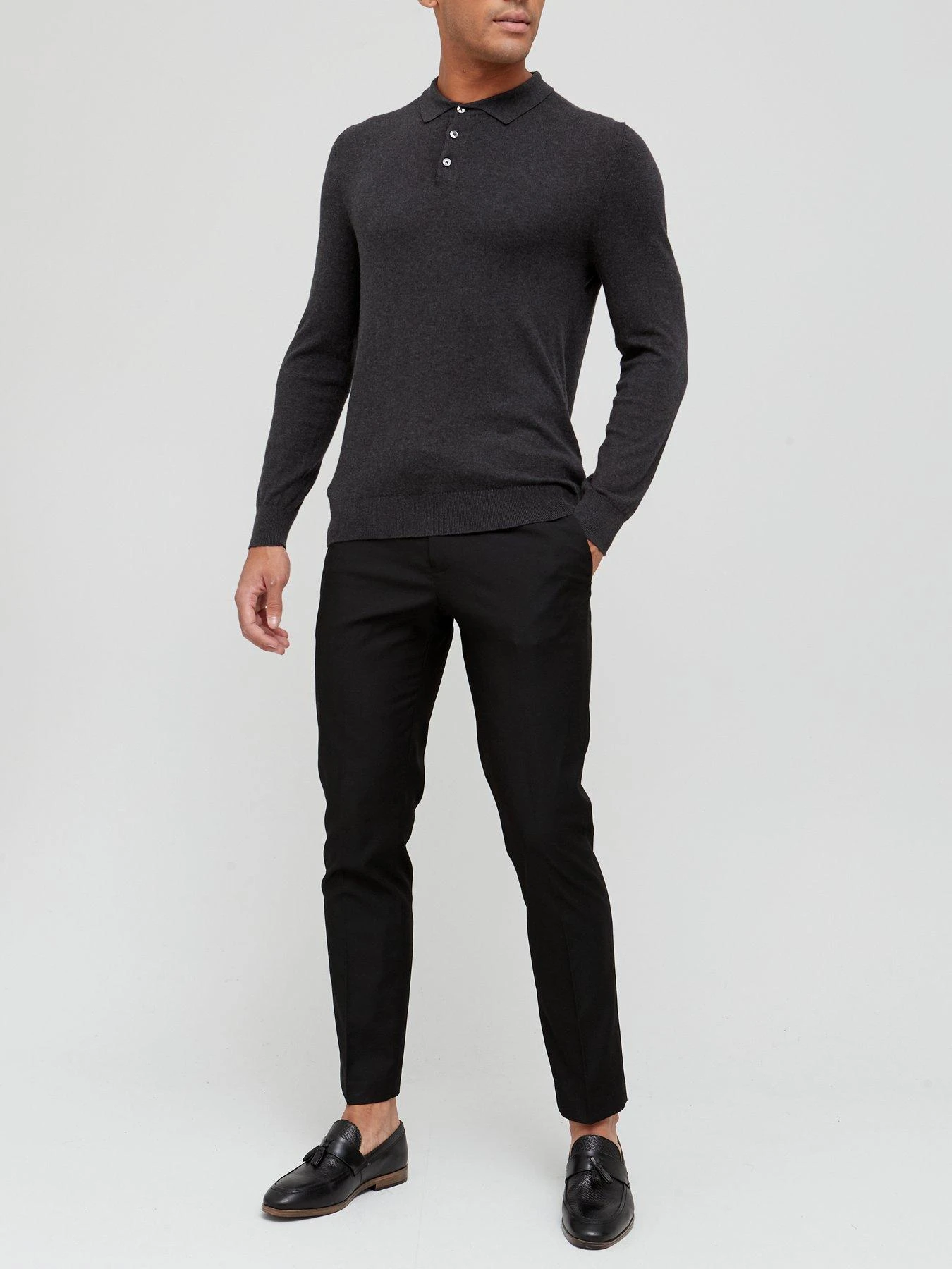 River Island Skinny Fit Twill Suit Trousers – Black
