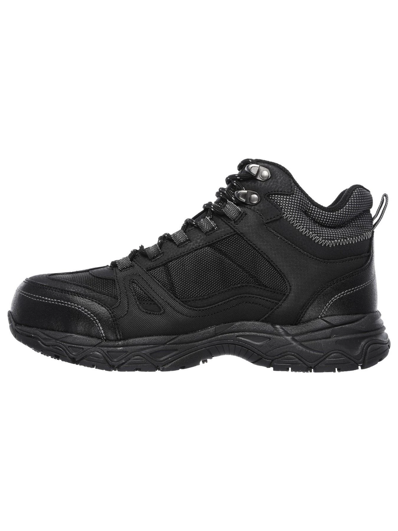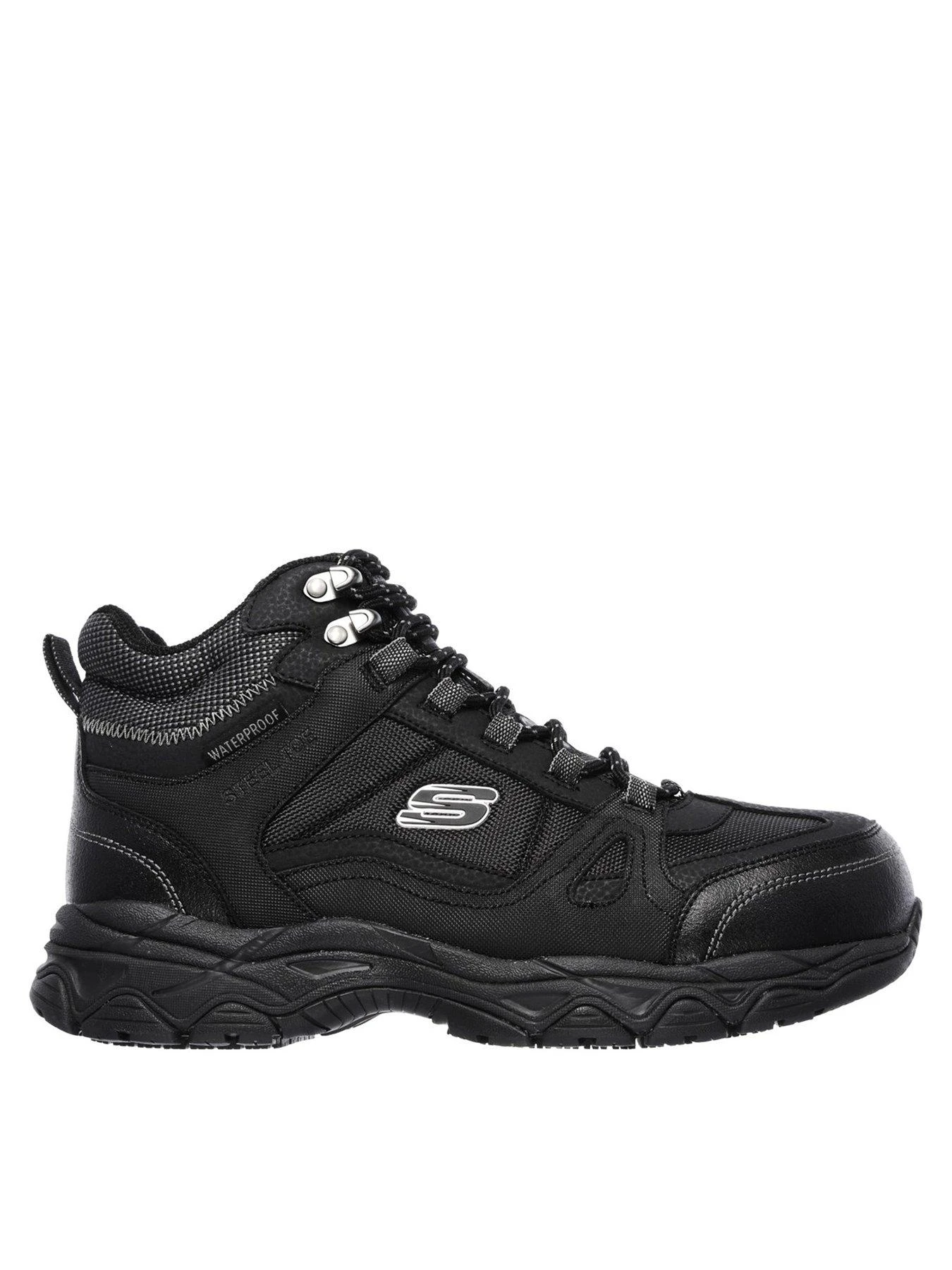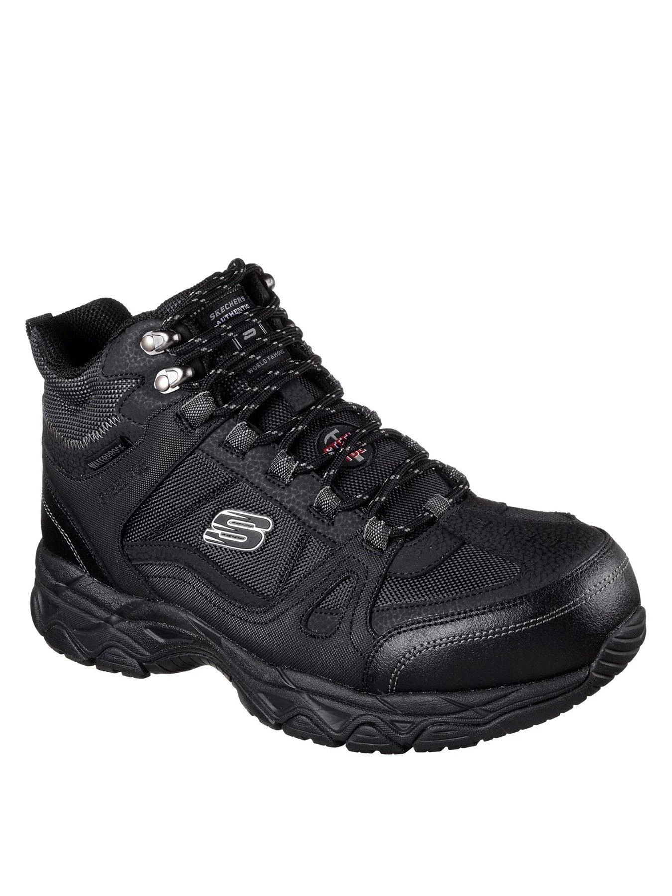 Be the model of long lasting comfort, protection and rugged style with the SKECHERS Work: Ledom ST WP boot. Smooth oiled leather, synthetic and mesh fabric upper in a lace up ankle height waterproof steel toe work boot with Air Cooled Memory Foam insole.