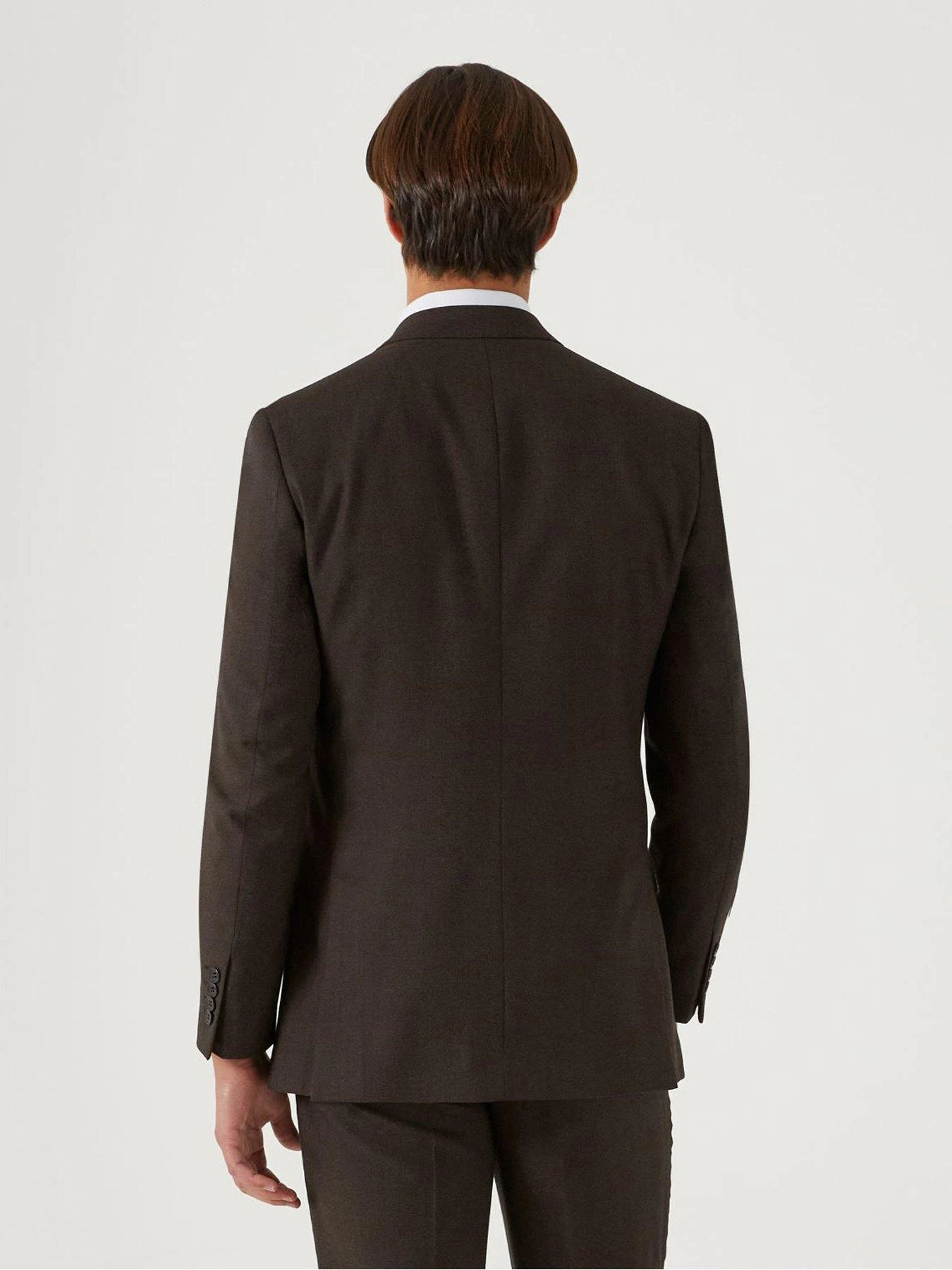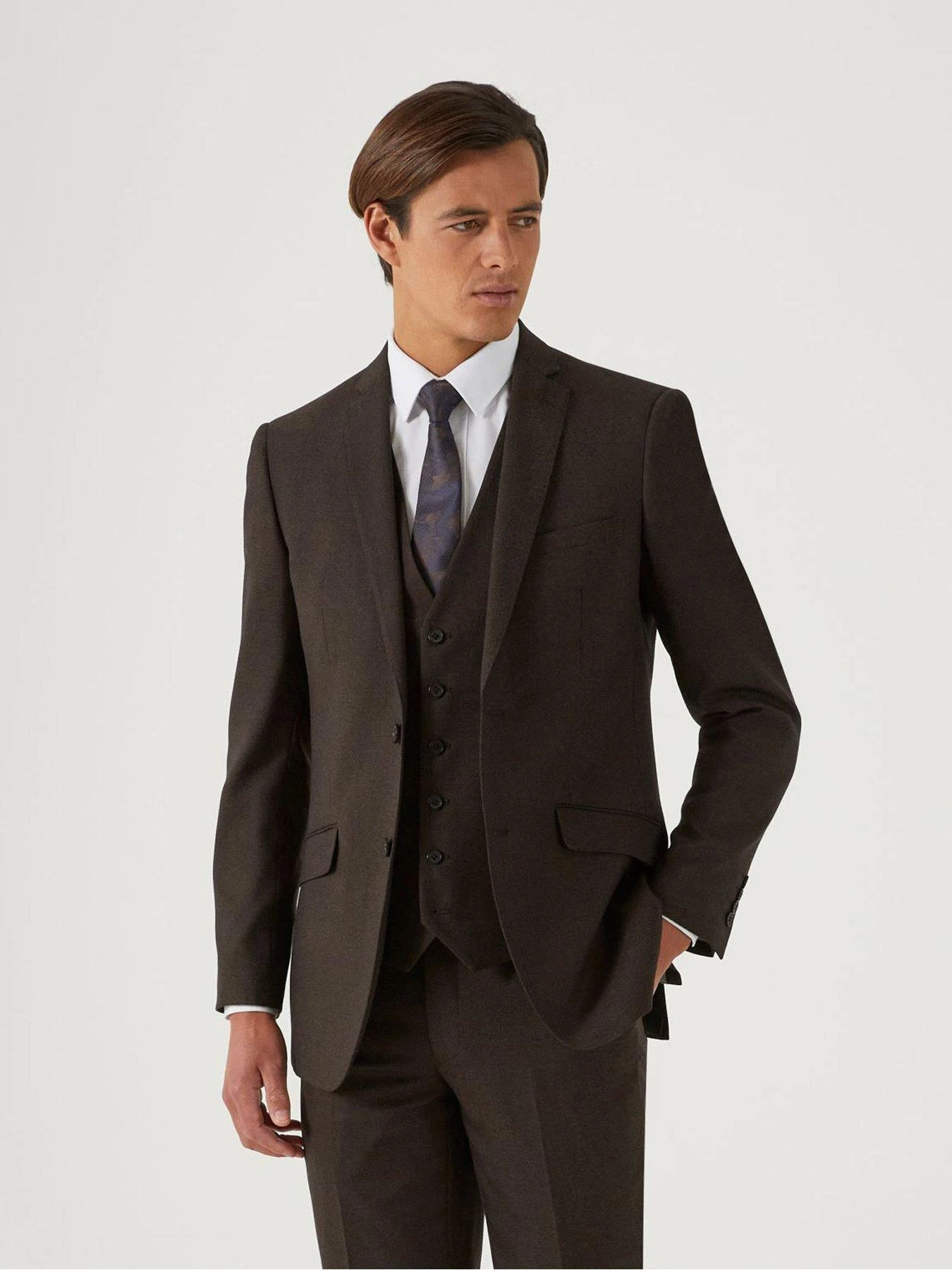 Tailored fit suit jacket in brown textured fabric. Features include single breasted, two button fastening, slant flap pockets, notch lapel, both tonal and pattern lining with twin side vents. See matching Harcourt suit trouser and waistcoat.