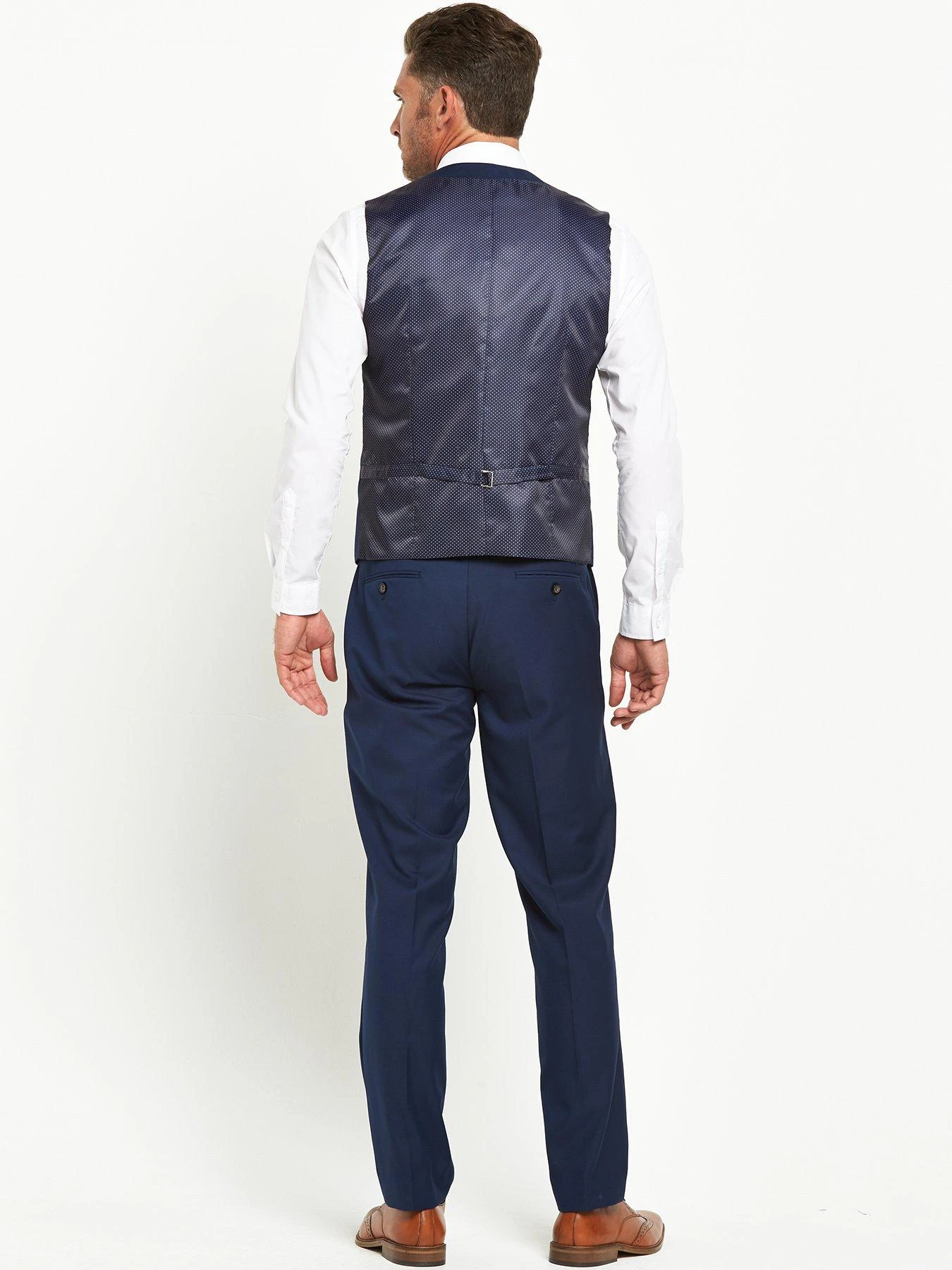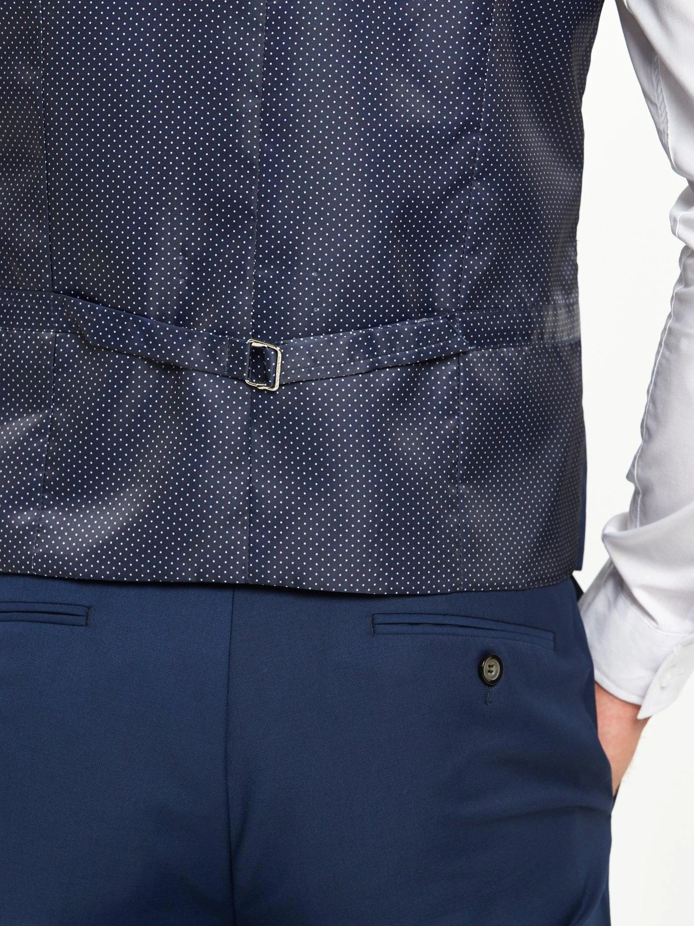 The Joss waistcoat by Skopes keeps your formal-wear immaculate when you take off your jacket. This luxurious wool-blend piece features a five-button fastening and a lustrous smooth back panel, printed with a polka pattern and completed with an adjustable strap. Co-ordinate with navy trousers.