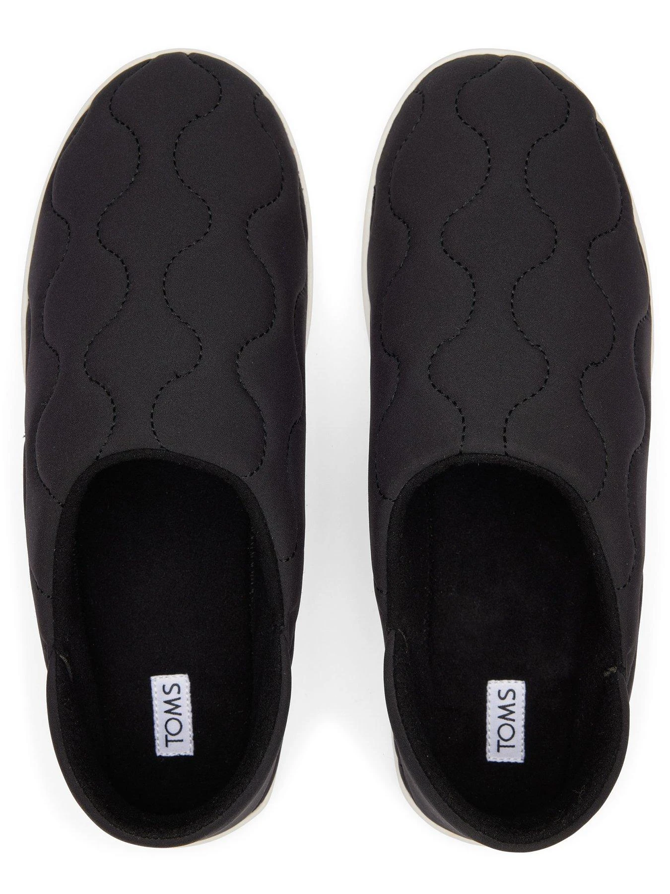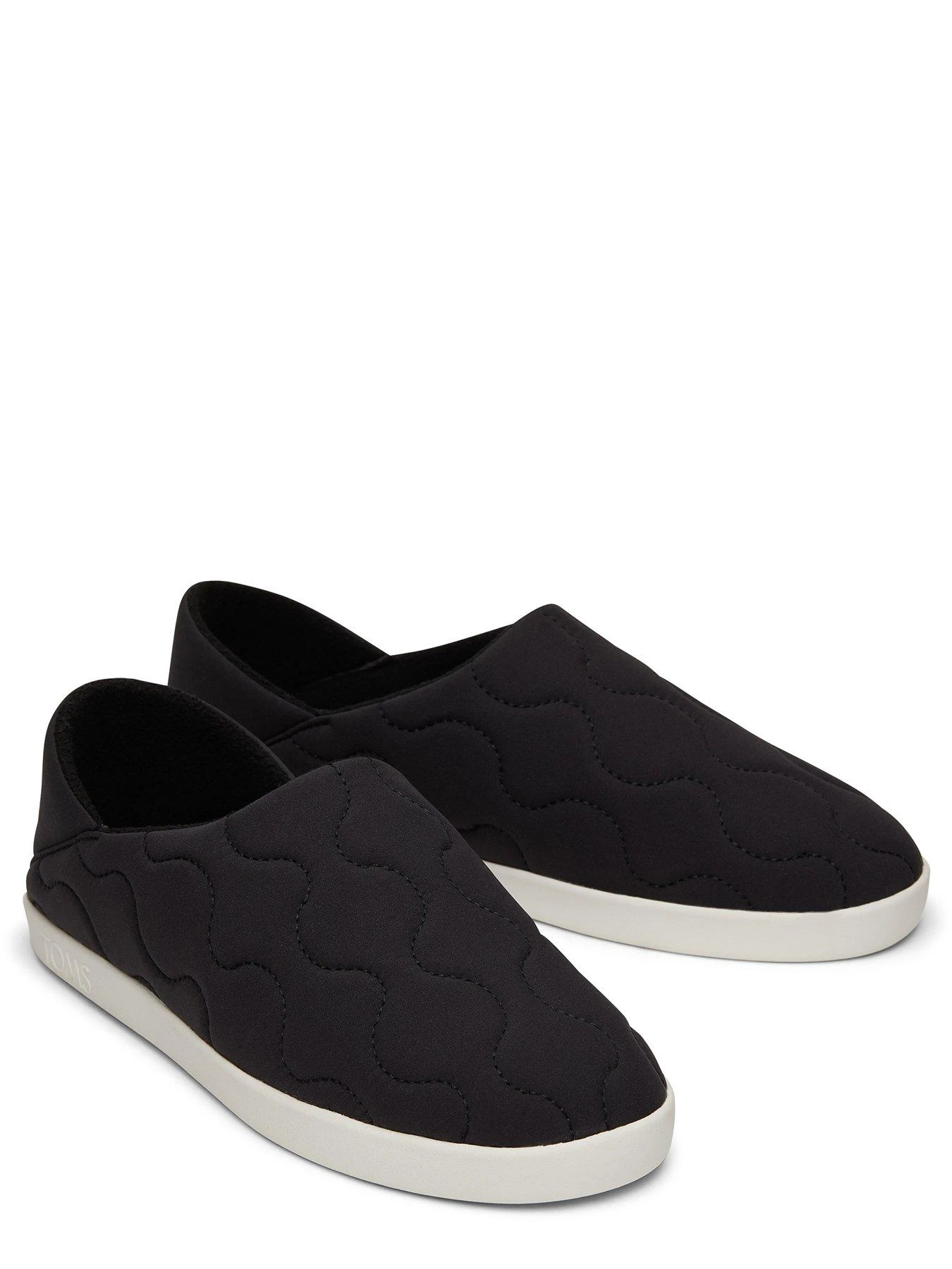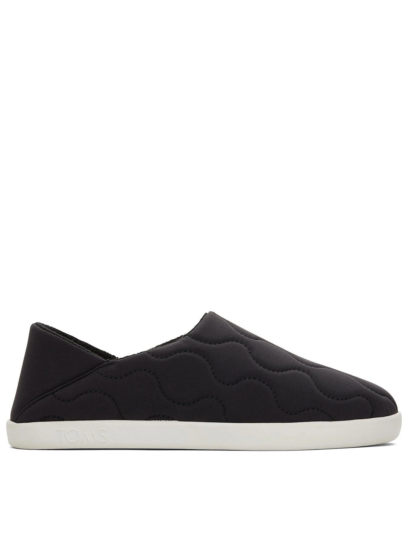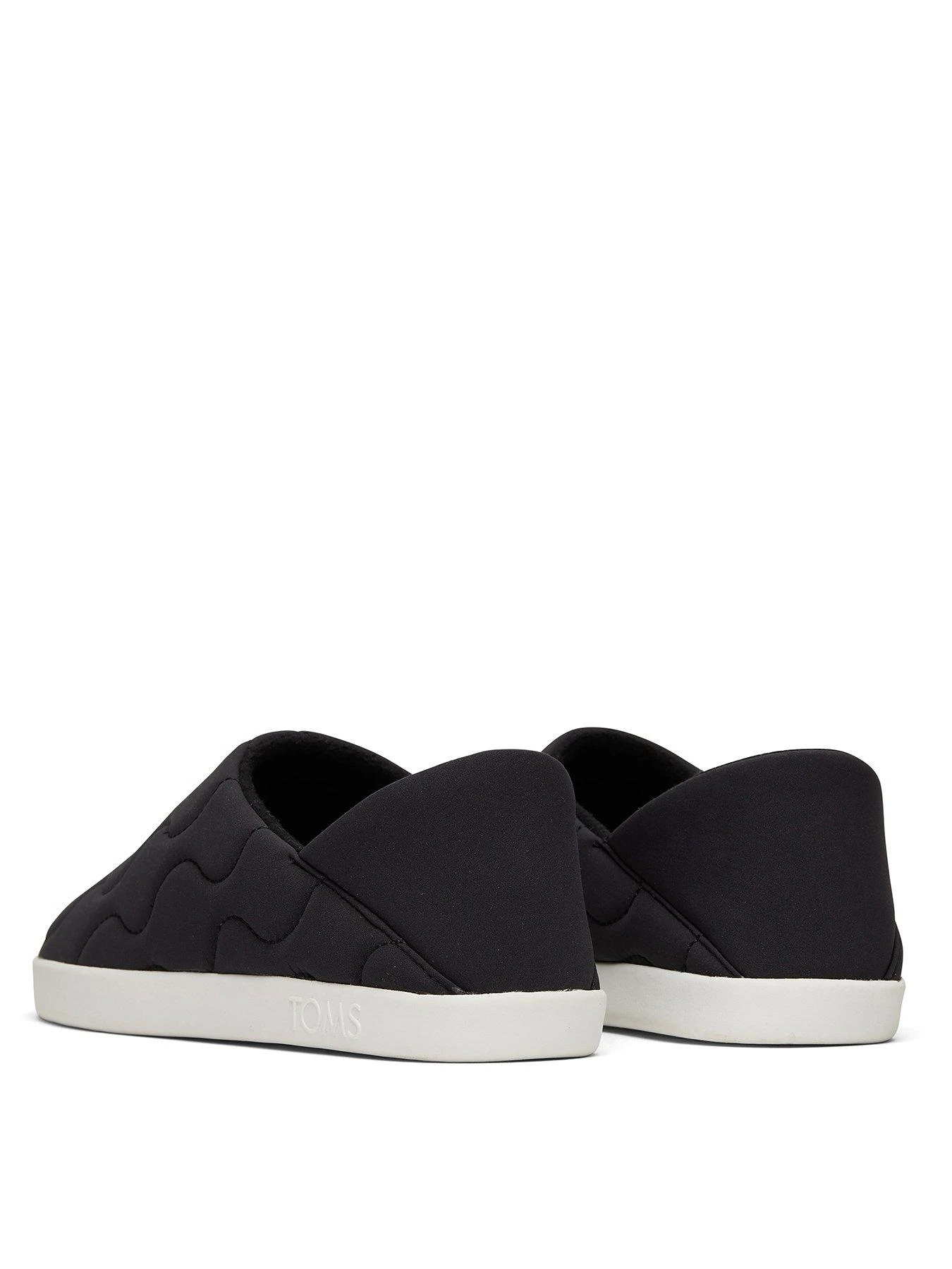 Convertible heel house slipper / Quilted textile uppers with cozy linings / TPR outsole with custom TOMS tread / Non-removeable insole / Outsole height approximately 1′