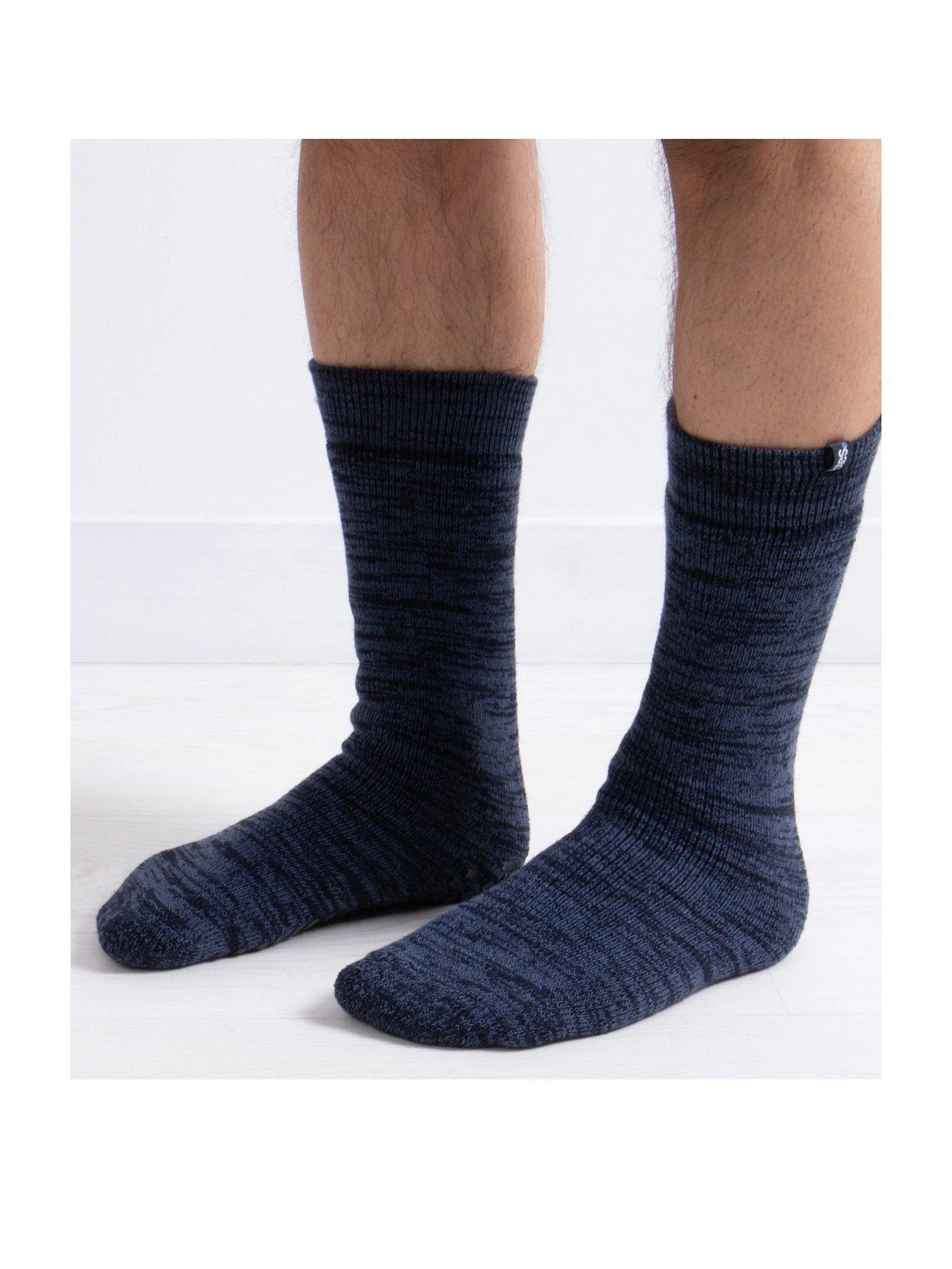 Classically styled totes toasties Originals slipper-sox in Navy twist. Thermal for extra warmth and with our famous slip-resistant tread, feet have got it made! 3.0 TOG rating for cosiness. Contains recycled yarns. One size fits most. Beautifully packaged for the perfect gift.