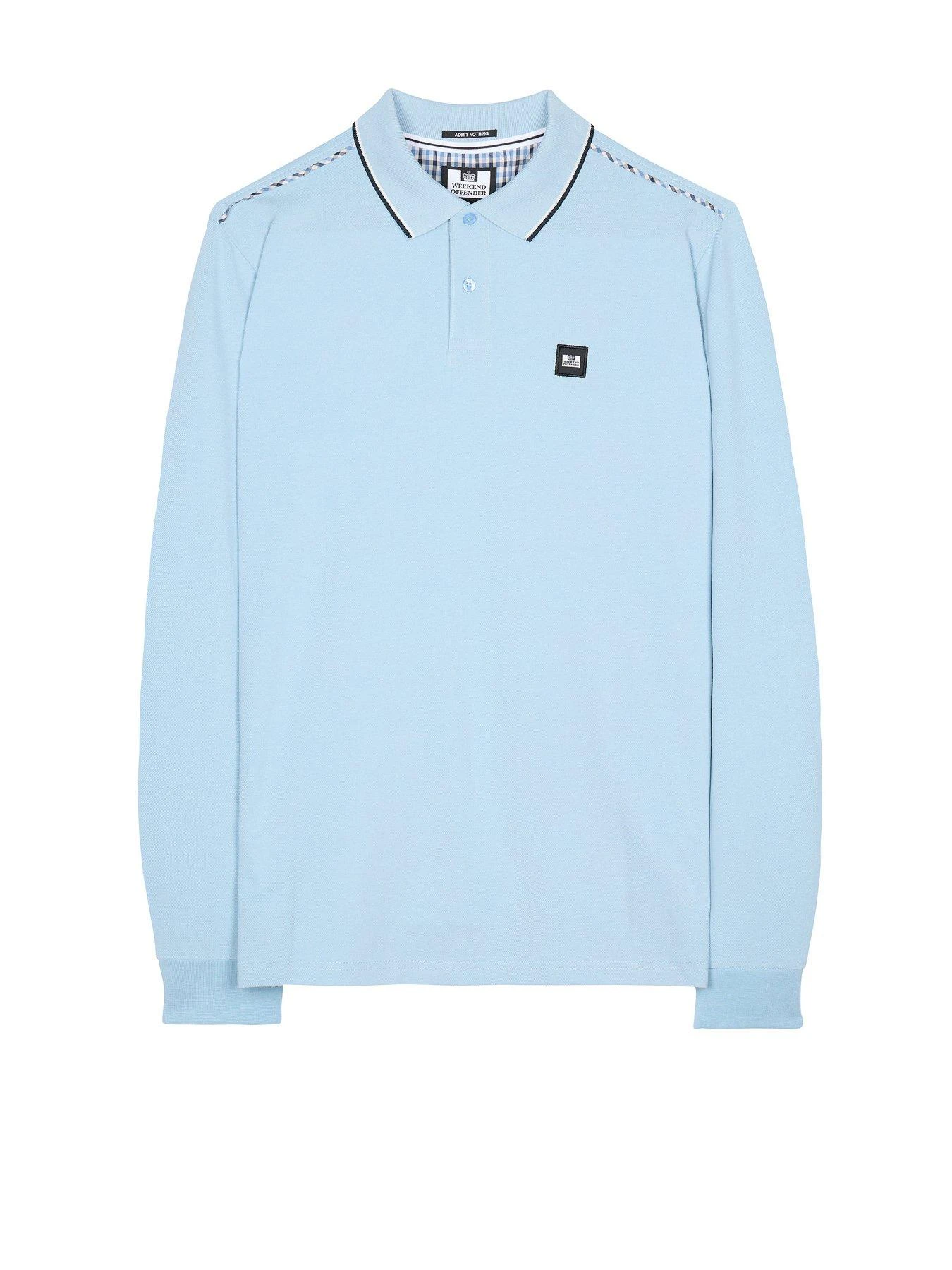 Weekend Offender Carola Long Sleeved Check Details Polo Shirt – Light Blue