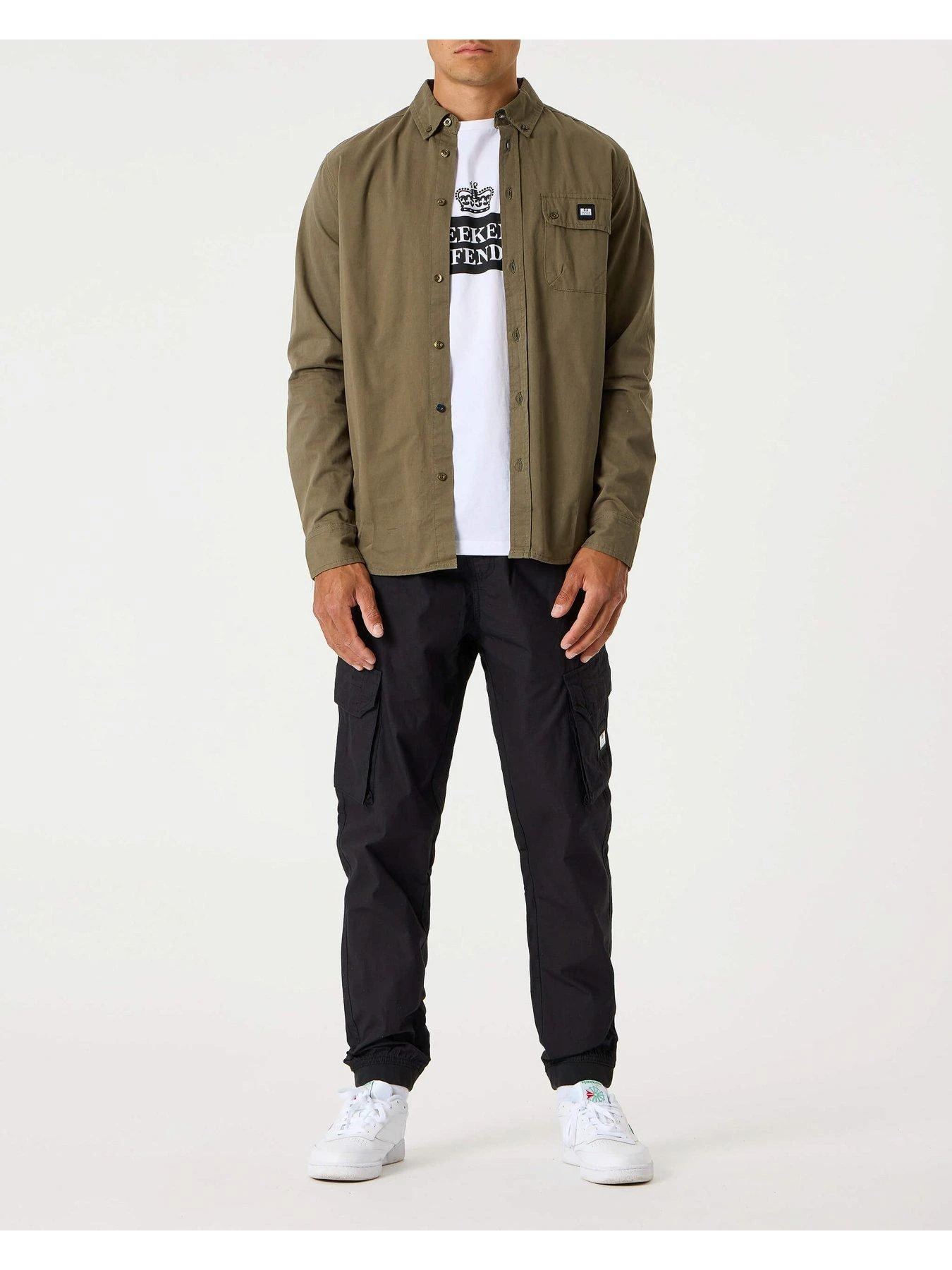 Woven Cargo Pants. 100% cotton fabric with a ripstop weave to create a tear resistant cross hatch effect. Angled 3D pockets, elastic waste band and cuff. Side entry zip pockets and WO badge to left pocket